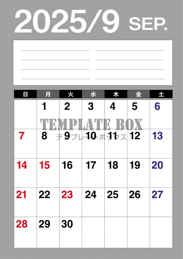 無料テンプレート:2025年9月カレンダー:モノクロがかっこいいカレンダー