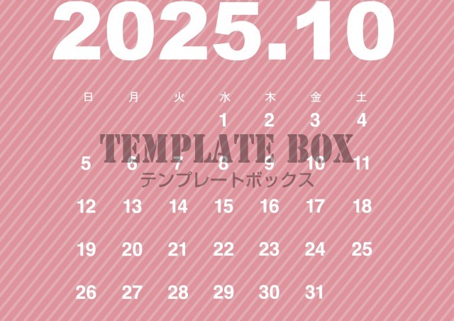 無料テンプレート:2025年10月カレンダー:横型のストライプ柄のカレンダー