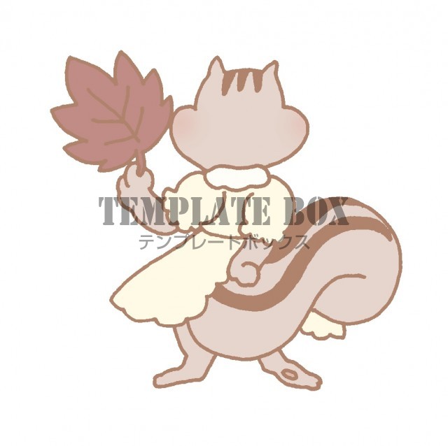 ご閲覧ありがとうございます。こちらは、落ち葉を抱えているリスのイラストで…