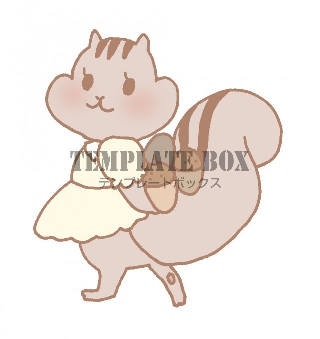 無料イラスト素材:秋の装飾にどうぞ/どんぐりを持っているリスの女の子のイラスト