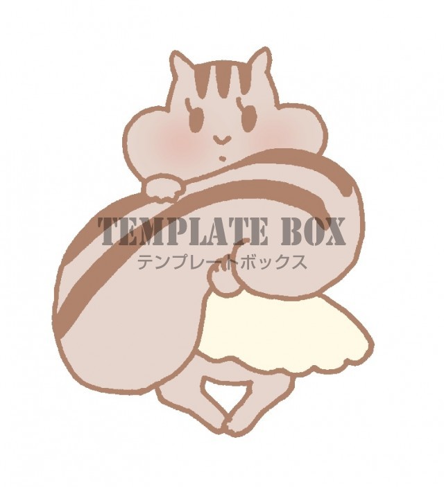 無料イラスト素材:動物のイラスト/しっぽを抱えているりすの女の子のワンポイントイラスト