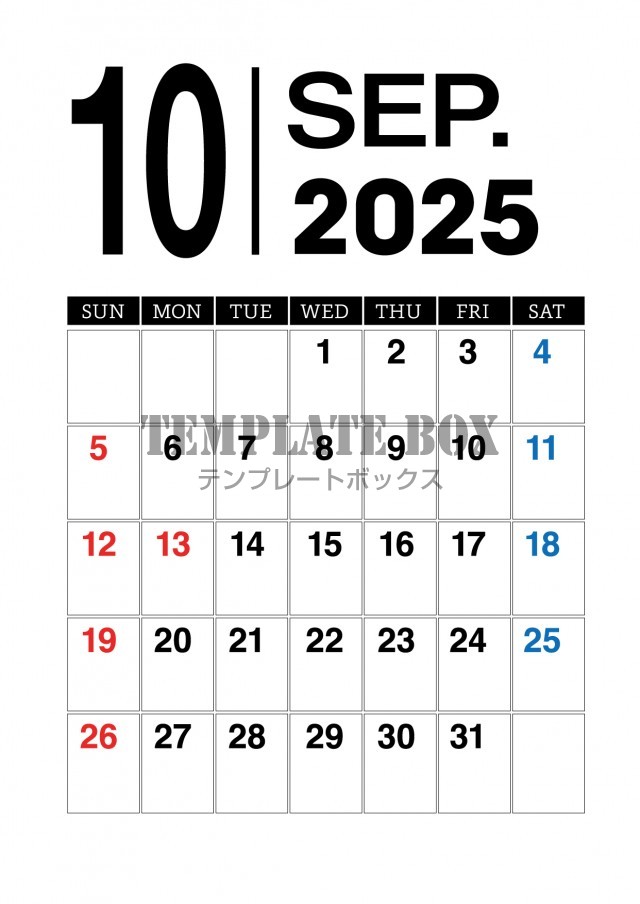 無料テンプレート:2025年10月カレンダー:縦型のシンプルなスケジュール管理
