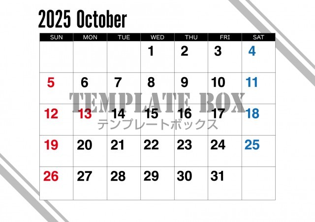 2025年10月カレンダー:シンプルかっこいいカレンダー
