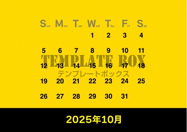 無料テンプレート:2025年10月カレンダー:横型の黄色がかっこいいカレンダー