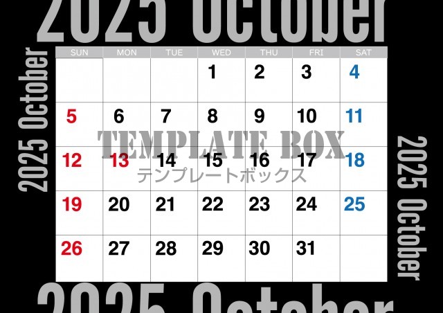無料テンプレート:2025年10月カレンダー:モノクロのおしゃれカレンダー