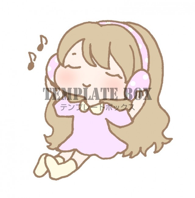 無料イラスト素材:ヘッドホンをつけて音楽を聴くのを楽しんでいる女の子のワンポイント