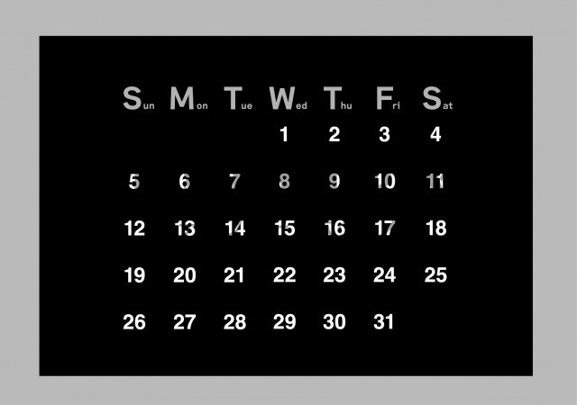グレーの配色がおしゃれなカレンダーです。シンプルなデザインで場所を選ばず…