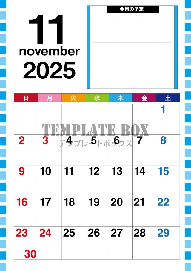 2025年11月カレンダー:ストライプ柄のカレンダー