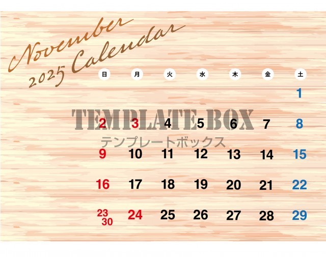 2025年11月カレンダー:秋のビジネス用カレンダー