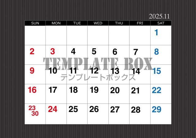 2025年11月カレンダー:横型のストライプ柄でみやすい素材