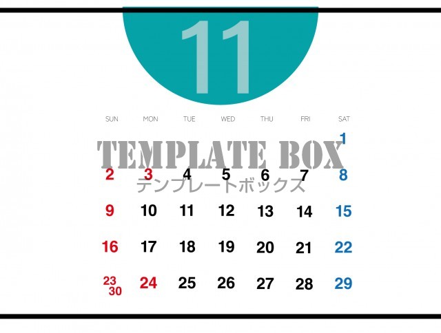 無料テンプレート:2025年11月カレンダー:横型の涼し気なカレンダー