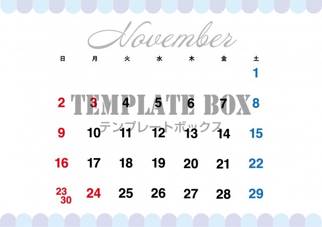 横型の筆記体がおしゃなカレンダー素材です。2025年11月カレンダーです…