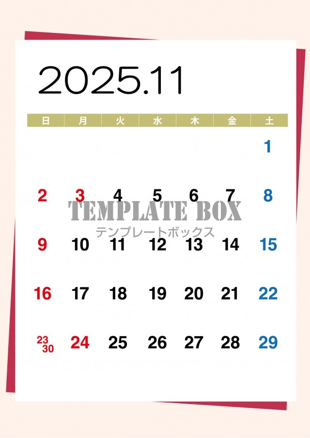 2025年11月カレンダー:秋の赤が目立つカレンダー