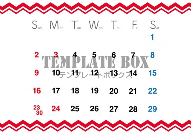 無料テンプレート:2025年11月カレンダー:横型のジグザグデザイン