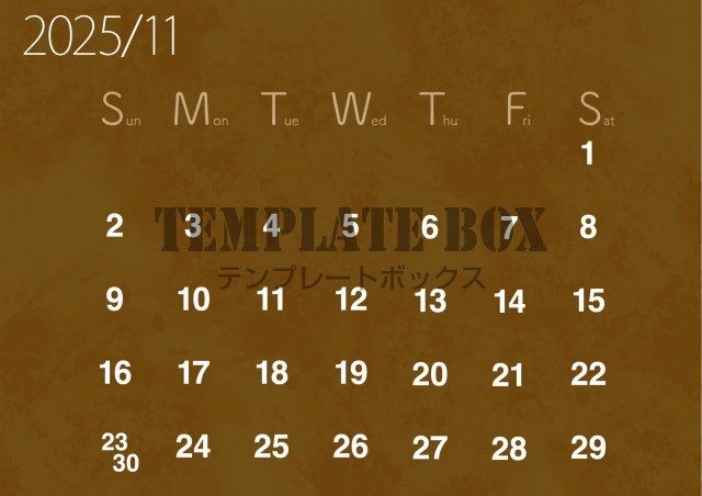 2025年11月カレンダー:秋のブラウン系カレンダー