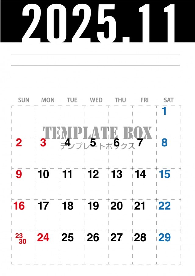 2025年11月カレンダー:縦型のシンプルかっこいいカレンダー