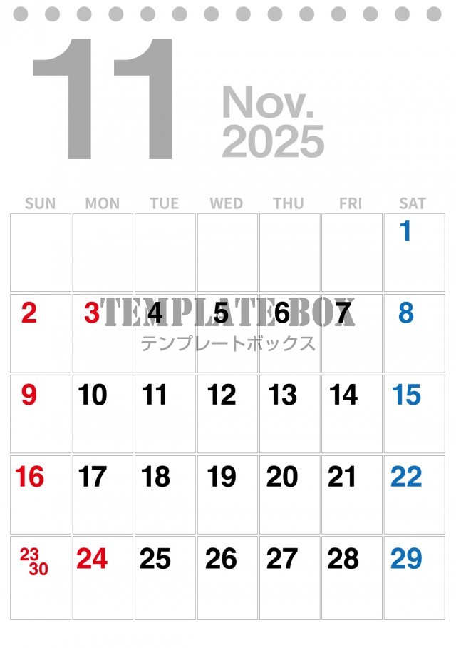 2025年11月カレンダー:縦型のシンプルかっこいいカレンダー