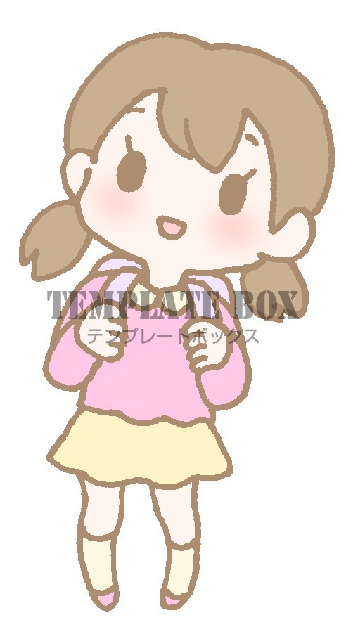 無料イラスト素材:ランドセルを背負っている小学生の女の子のワンポイントイラスト