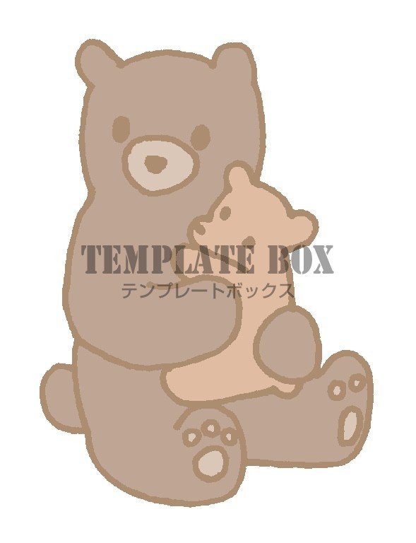 無料イラスト素材:子グマを抱っこしている親グマのワンポイントイラスト