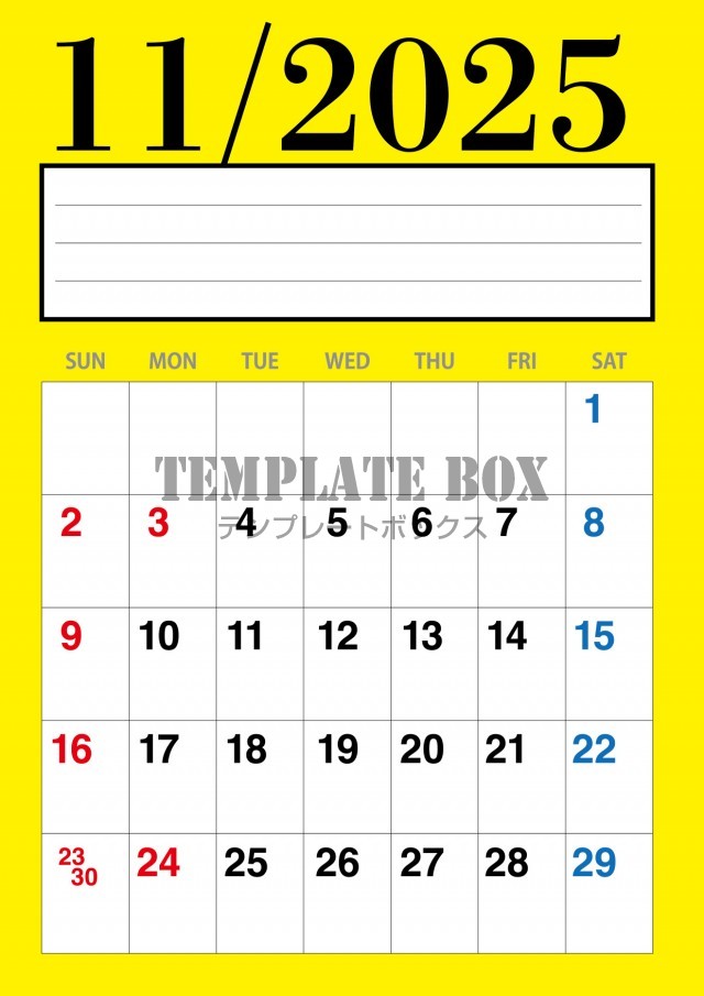 2025年11月カレンダー:日付を書き込む場所がみやすい