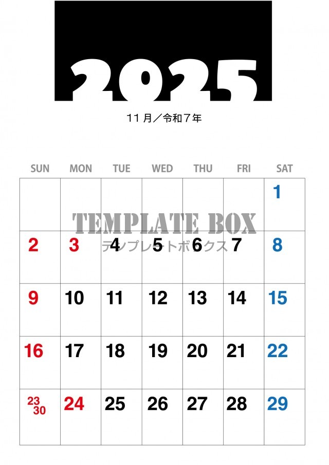 2025年11月カレンダー:縦型のシンプルカレンダー