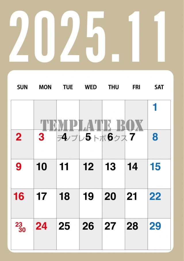 2025年11月カレンダー:秋のベージュがおしゃれなカレンダー