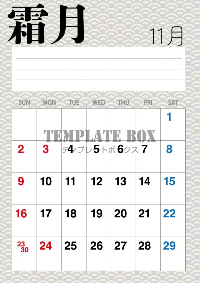 無料テンプレート:2025年11月カレンダー:秋の和風おしゃれカレンダー