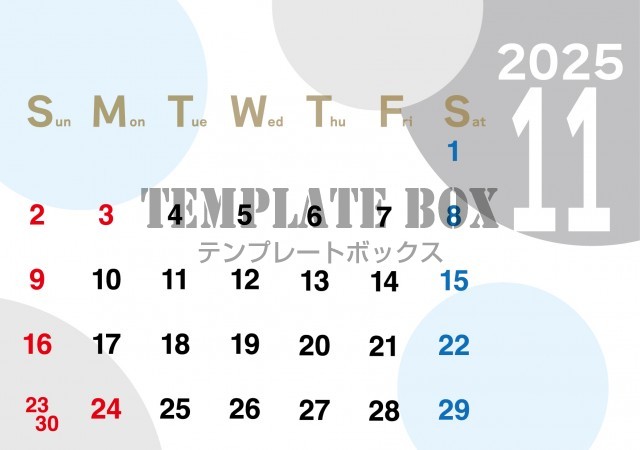 無料テンプレート:2025年11月カレンダー:秋のモダンなカレンダー