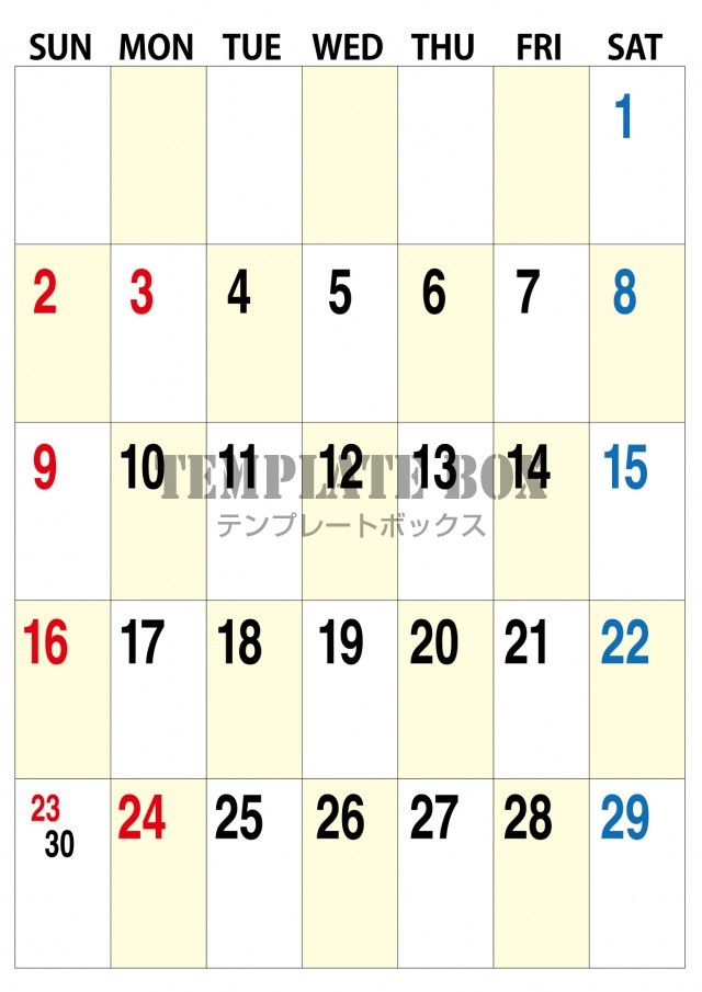 横型の枠でわかれた日付はスケジュール管理に最適で普段使いにおすすめのカレ…