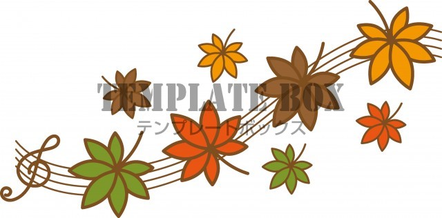 無料イラスト素材:秋のイメージのイラスト素材、五線譜の上を流れる秋色に染まったもみじの葉