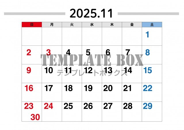 2025年11月カレンダー:横型シンプルデザインのカレンダー