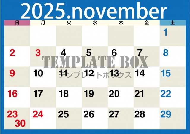無料テンプレート:2025年11月カレンダー:横型市松模様柄カレンダー