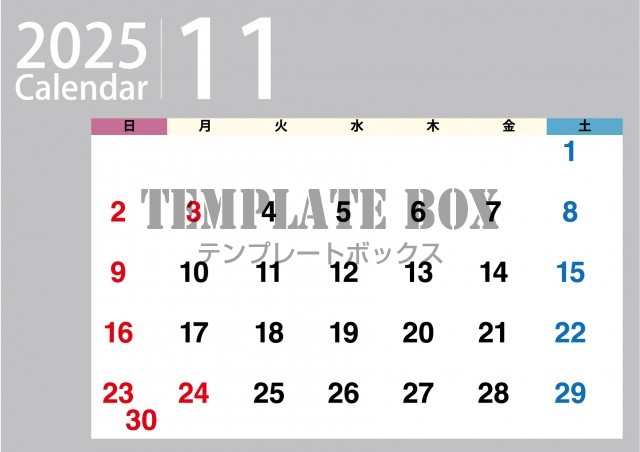 2025年11月カレンダー:秋の日付がみやすいカレンダー