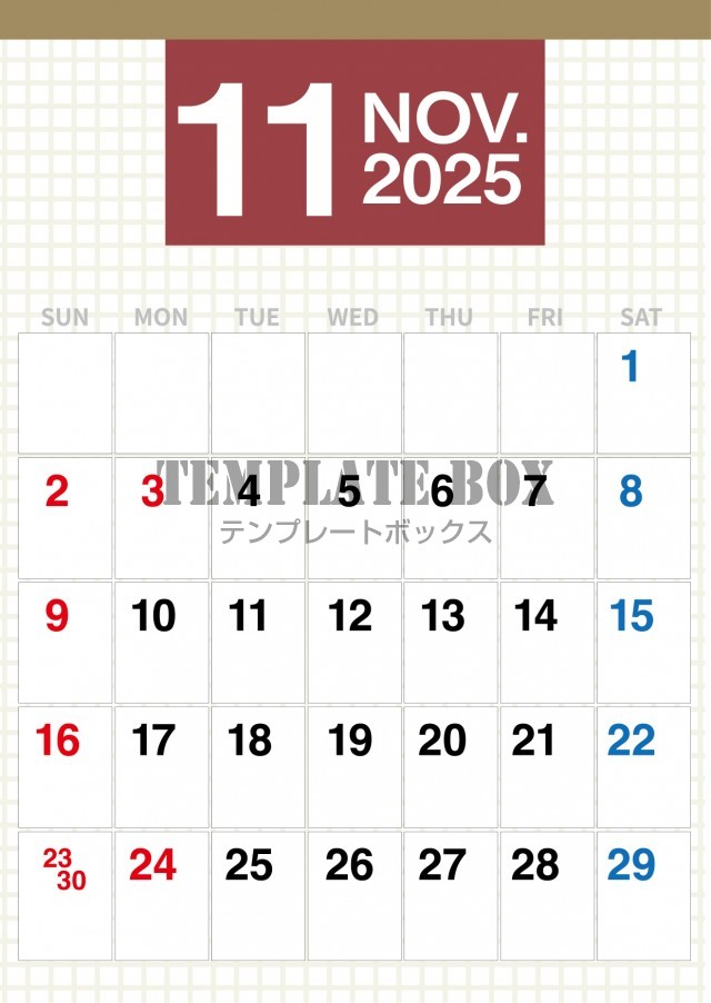 2025年11月カレンダー:横型市松模様柄カレンダー