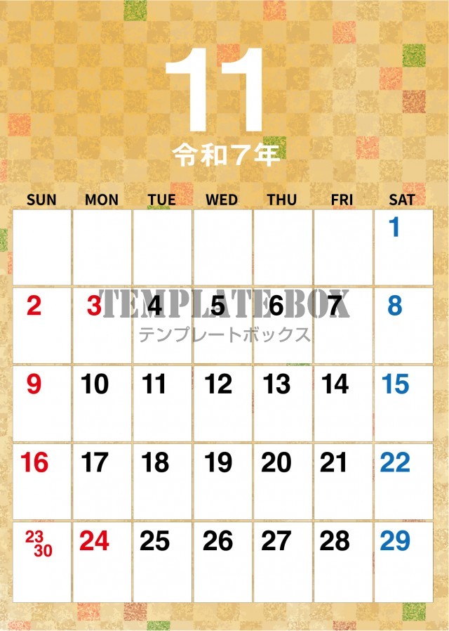 2025年11月カレンダー:横型市松模様柄カレンダー
