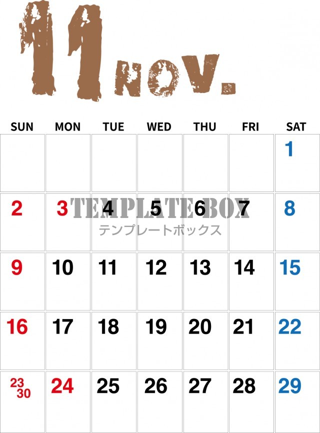 2025年11月カレンダー:秋の11月シンプルカレンダー