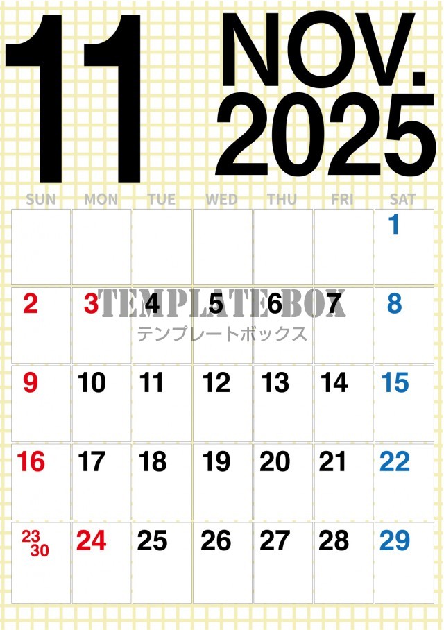 2025年11月カレンダー:秋の日付がみやすいカレンダー
