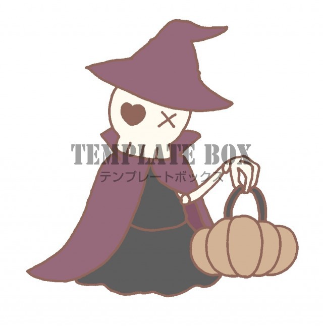 無料イラスト素材:ハロウィンのワンポイントイラスト・ガイコツの魔女のイラスト
