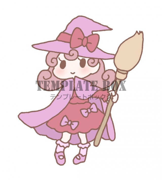 無料イラスト素材:ハロウィンのワンポイントイラスト・ピンク色のかわいい魔女のイラスト