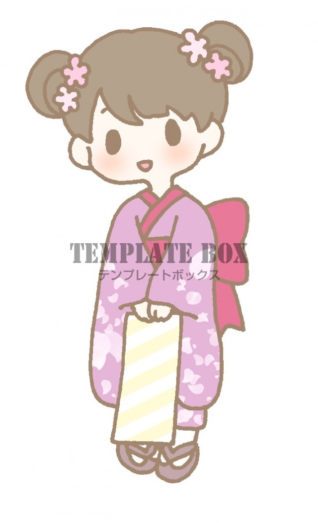 無料イラスト素材:七五三の着物を着ている女の子のワンポイントイラスト