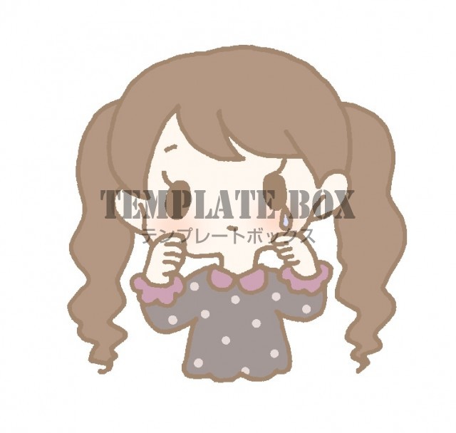 無料イラスト素材:泣いているツインテールの女の子のワンポイントイラスト
