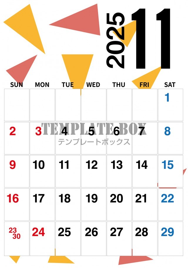 2025年11月カレンダーです。オフィスやご自宅用としてご利用いただける…