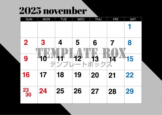 無料テンプレート:2025年11月カレンダー:横型のデザイン性高いカレンダー