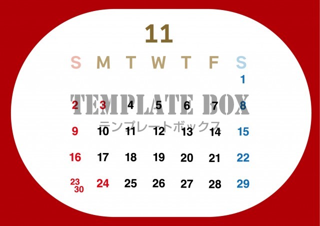 2025年11月カレンダー:秋の11月シンプルカレンダー