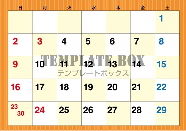 無料テンプレート:2025年11月カレンダー:秋のオレンジカラーのカレンダー