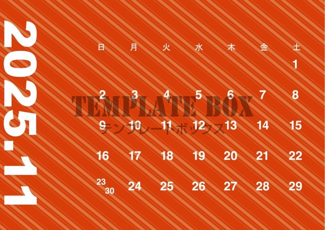無料テンプレート:2025年11月カレンダー:秋のストライプ柄のカレンダー