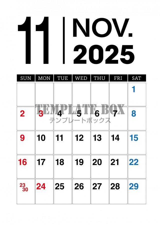 無料テンプレート:2025年11月カレンダー:縦型の黒ベースのカレンダー