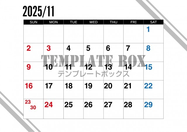 2025年11月カレンダー:目立つ配色が特徴的なカレンダー
