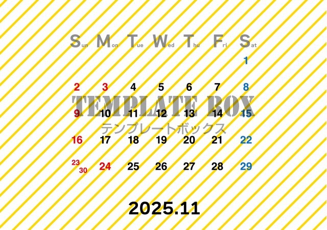2025年11月カレンダー:秋のストライプ柄のカレンダー