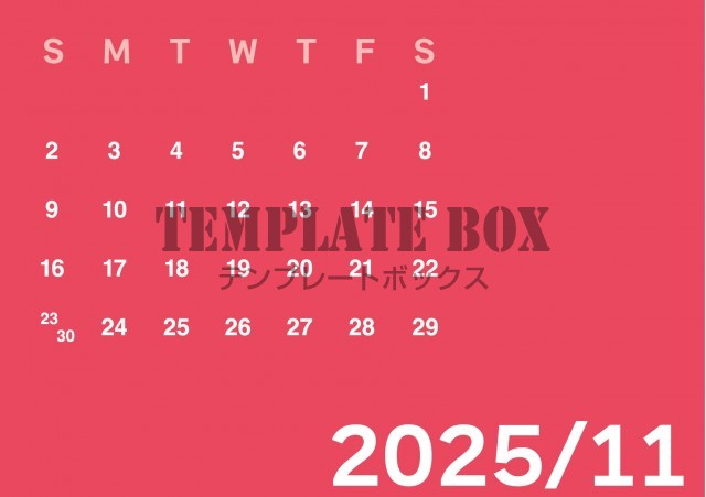 無料テンプレート:2025年11月カレンダー:横型のピンクがかわいいカレンダー